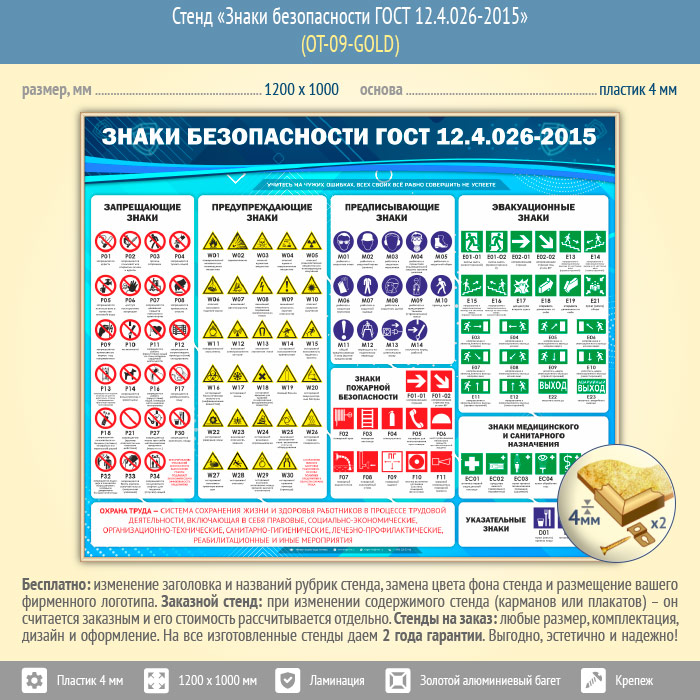 Стенд «Знаки безопасности ГОСТ 12.4.026-2015» (OT-09-GOLD) в Альметьевске купить