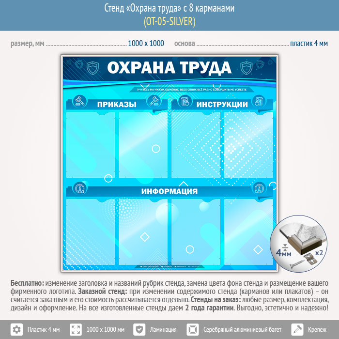 Стенд «Охрана труда» с 8 карманами (OT-05-SILVER) в Альметьевске купить