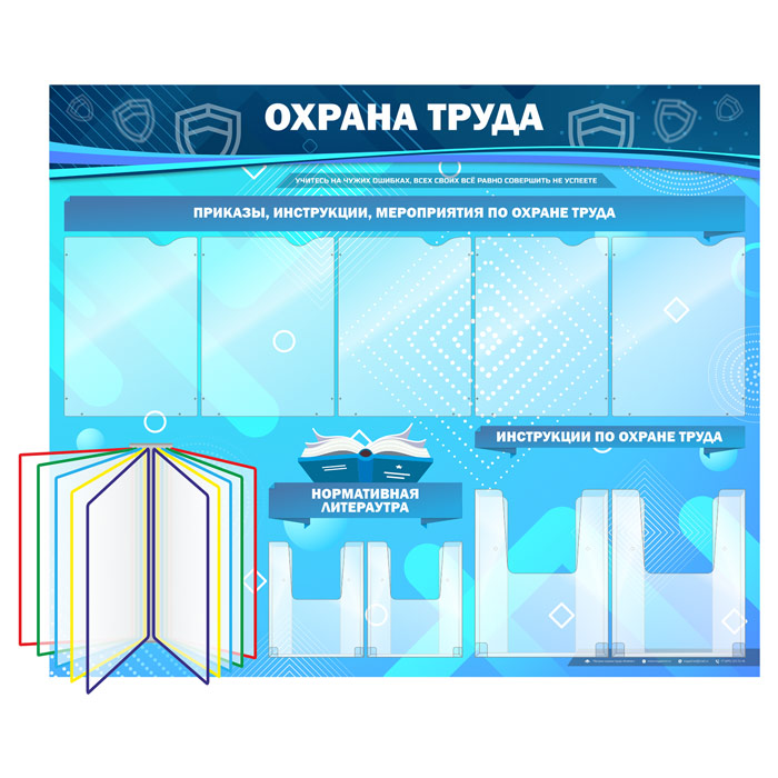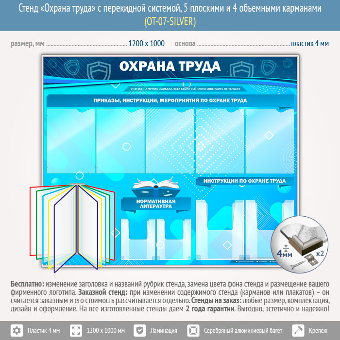Стенд «Охрана труда» с перекидной системой, 5 плоскими и 4 объемными карманами (OT-07-SILVER) в Альметьевске купить