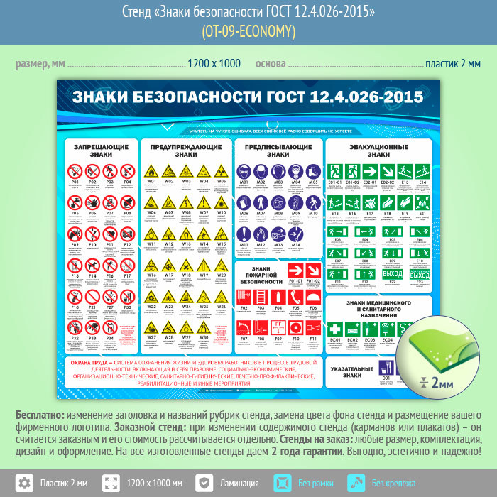 Стенд «Знаки безопасности ГОСТ 12.4.026-2015» (OT-09-ECONOMY) в Альметьевске купить