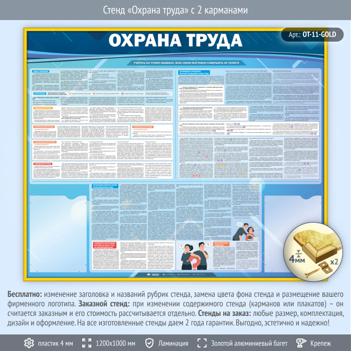 Стенд «Охрана труда» с 2 карманами (OT-11-GOLD) в Альметьевске купить