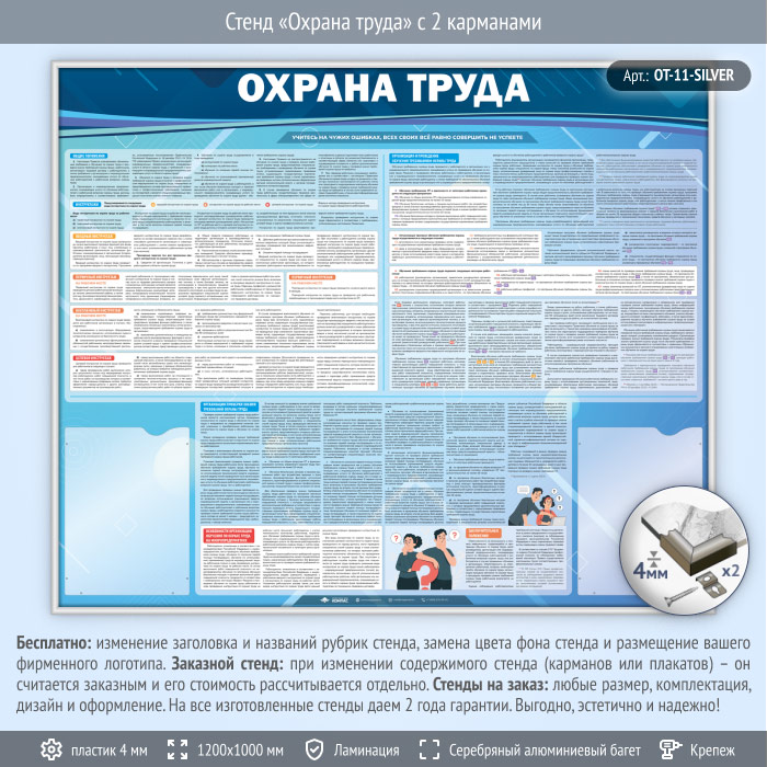 Стенд «Охрана труда» с 2 карманами (OT-11-SILVER) в Альметьевске купить