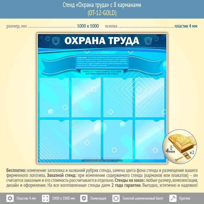 Стенд «Охрана труда» с 8 карманами (OT-12-GOLD) в Альметьевске купить