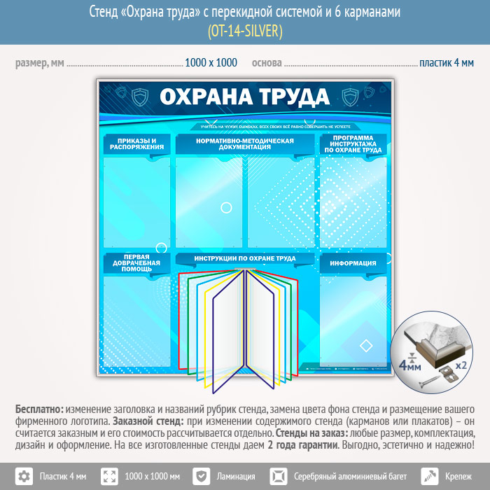 Стенд «Охрана труда» с перекидной системой и 6 карманами (OT-14-SILVER) в Альметьевске купить