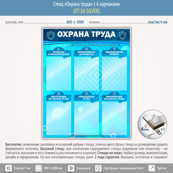 Стенд «Охрана труда» с 6 карманами (OT-16-SILVER) в Альметьевске купить