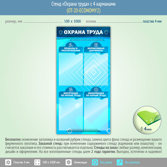Стенд «Охрана труда» с 4 карманами (OT-20-ECONOMY2) в Альметьевске купить