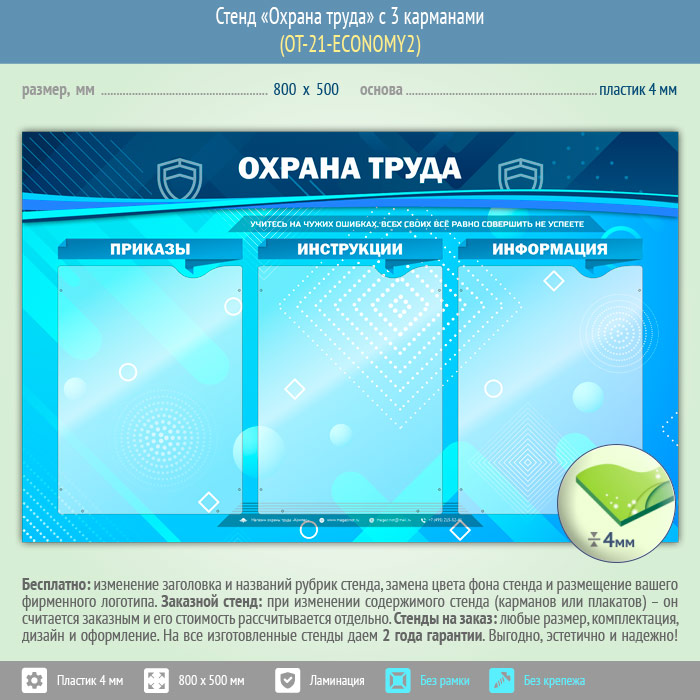 Стенд «Охрана труда» с 3 карманами (OT-21-ECONOMY2) в Альметьевске купить
