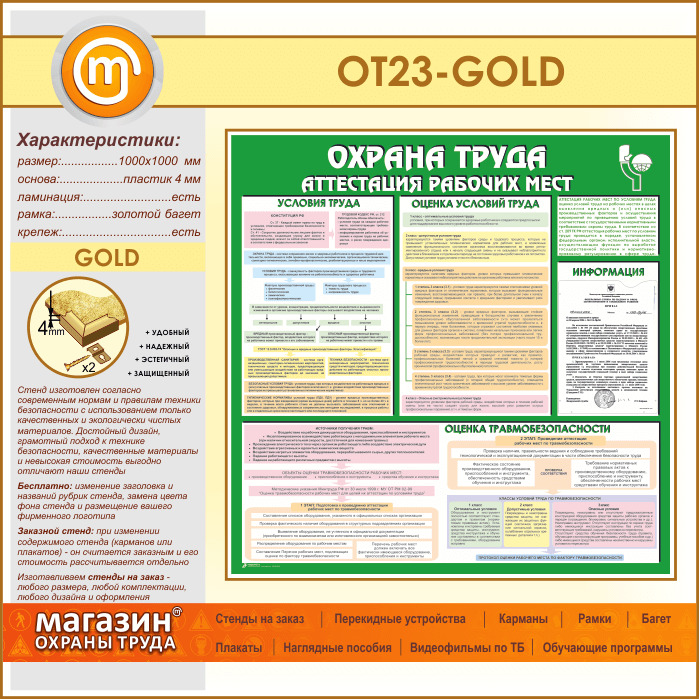 Стенд «Охрана труда. Аттестация рабочих мест» с карманом (OT-23-GOLD) в Альметьевске купить