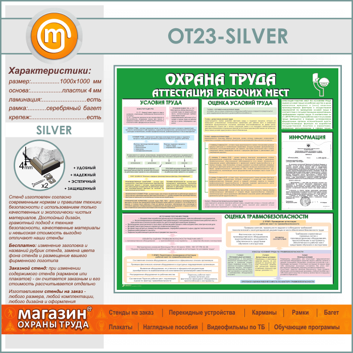 Стенд «Охрана труда. Аттестация рабочих мест» с карманом (OT-23-SILVER) в Альметьевске купить