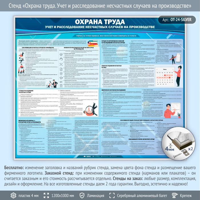 Стенд «Охрана труда. Учет и расследование несчастных случаев на производстве» (OT-24-SILVER) в Альметьевске купить