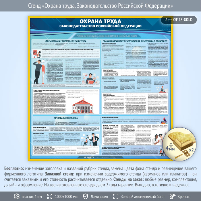 Стенд «Охрана труда. Законодательство Российской Федерации» (OT-28-GOLD) в Альметьевске купить