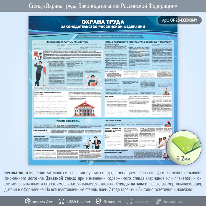 Стенд «Охрана труда. Законодательство Российской Федерации» (OT-28-ECONOMY) в Альметьевске купить