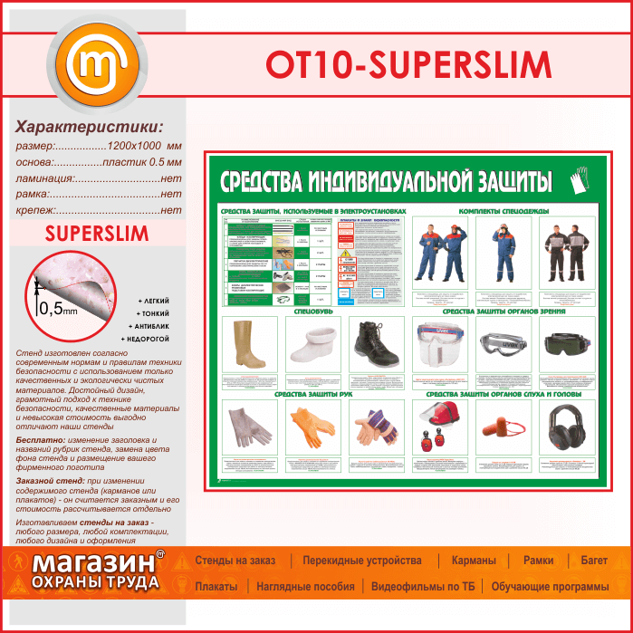 Стенд «Средства индивидуальной защиты» (OT-10-SUPERSLIM) в Альметьевске купить