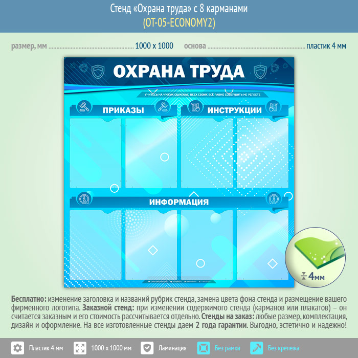 Стенд «Охрана труда» с 8 карманами (OT-05-ECONOMY2) в Альметьевске купить