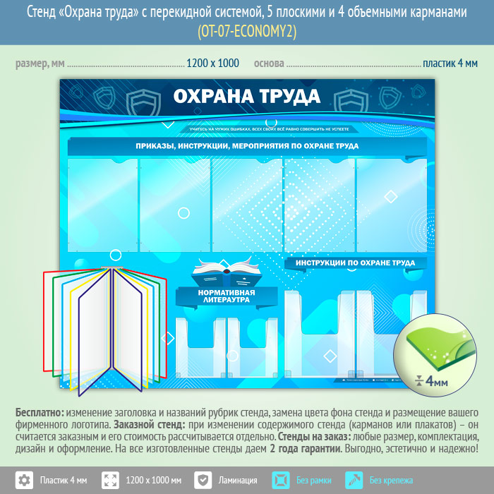 Стенд «Охрана труда» с перекидной системой, 5 плоскими и 4 объемными карманами (OT-07-ECONOMY2) в Альметьевске купить