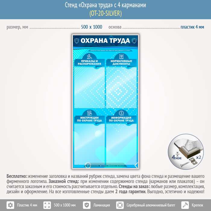 Стенд «Охрана труда» с 4 карманами (OT-20-SILVER) в Альметьевске купить
