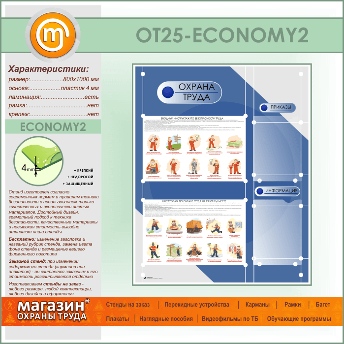 Стенд «Охрана труда» с 2 плоскими карманами (OT-25-ECONOMY2) в Альметьевске купить