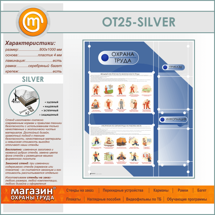 Стенд «Охрана труда» с 2 плоскими карманами (OT-25-SILVER) в Альметьевске купить