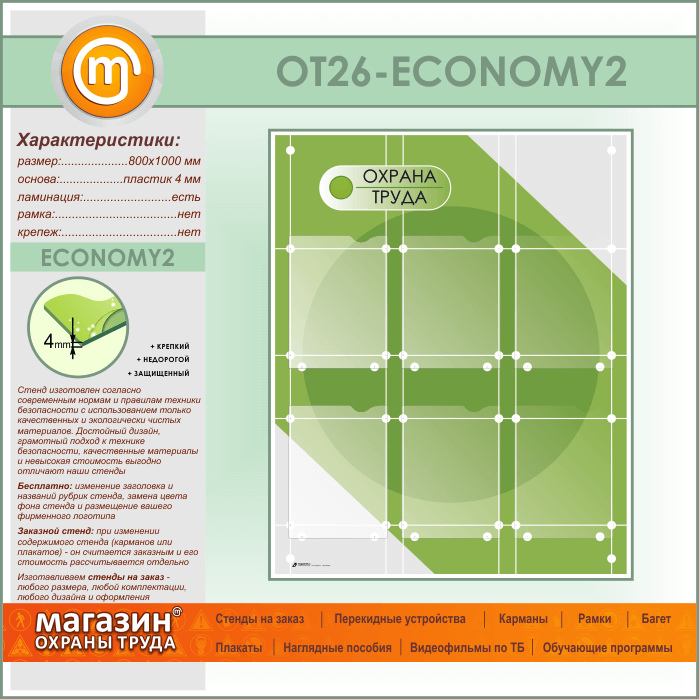 Стенд «Охрана труда» с 6 плоскими карманами (OT-26-ECONOMY2) в Альметьевске купить