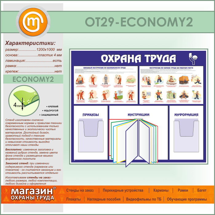 Стенд «Охрана труда» с перекидной системой и 2 объемными карманами (OT-29-ECONOMY2) в Альметьевске купить
