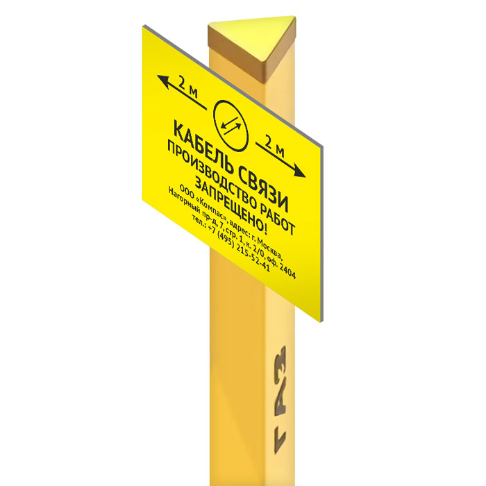 Столбик треугольный желтый h=1800 мм (сторона 180 мм) в Альметьевске купить