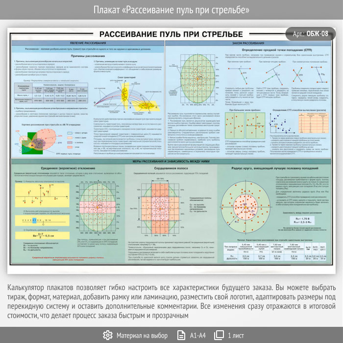 Плакат «Рассеивание пуль при стрельбе» (ОБЖ-08, 1 лист) в Альметьевске купить