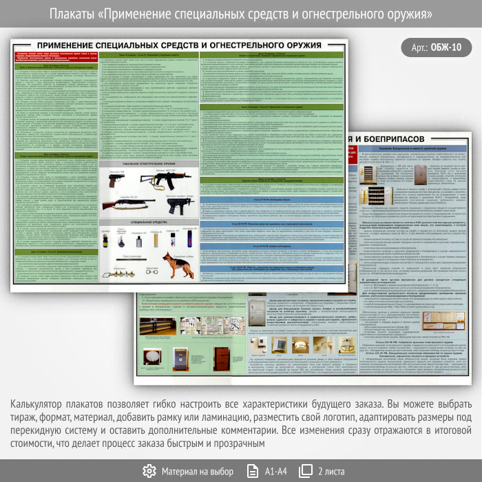 Плакаты «Применение специальных средств и огнестрельного оружия» (ОБЖ-10, 2 листа) в Альметьевске купить