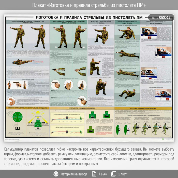 Плакат «Изготовка и правила стрельбы из пистолета ПМ» (ОБЖ-12, 1 лист) в Альметьевске купить