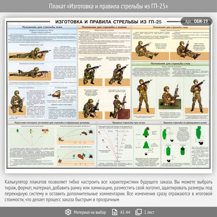Плакат «Изготовка и правила стрельбы из ГП-25» (ОБЖ-19, 1 лист) в Альметьевске купить