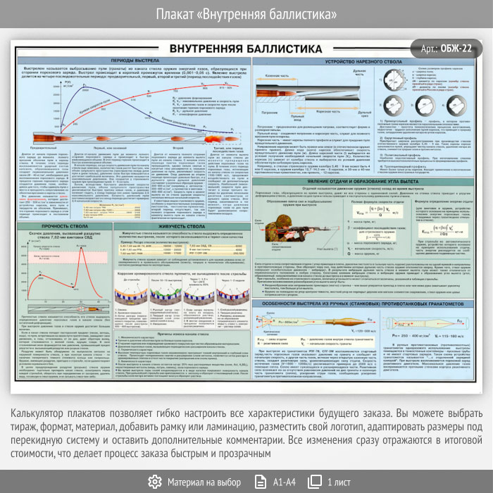 Плакат «Внутренняя баллистика» (ОБЖ-22, 1 лист) в Альметьевске купить