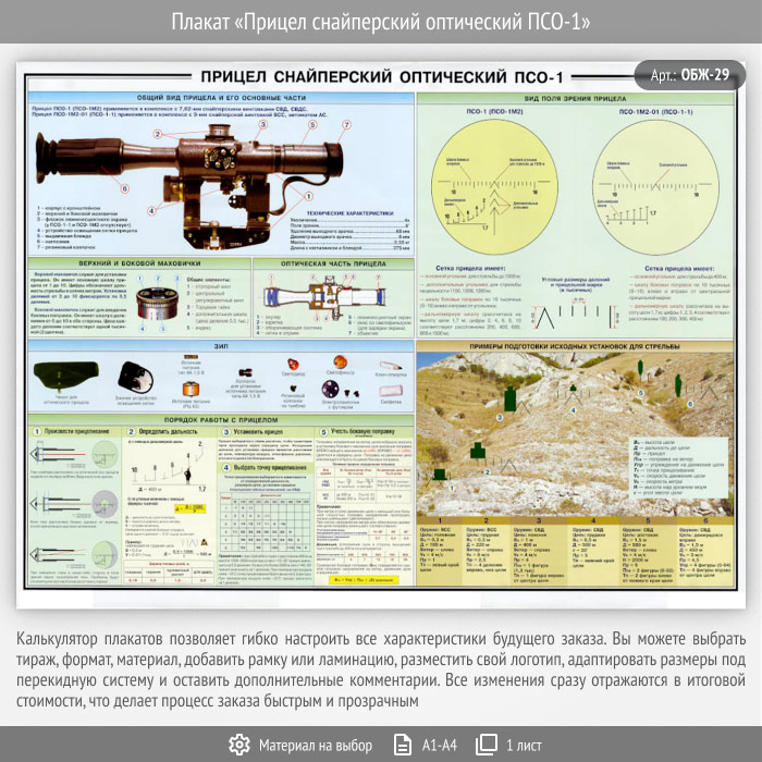 Плакат «Прицел снайперский оптический ПСО-1» (ОБЖ-29, 1 лист) в Альметьевске купить