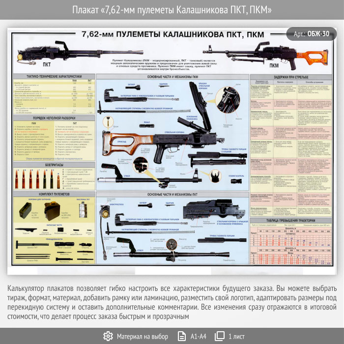 Плакат «7,62-мм пулеметы Калашникова ПКТ, ПКМ» (ОБЖ-30, 1 лист) в Альметьевске купить