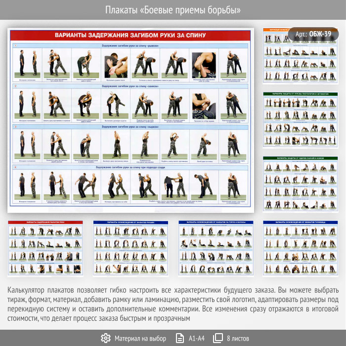 Плакаты «Боевые приемы борьбы» (ОБЖ-39, 8 листа) в Альметьевске купить
