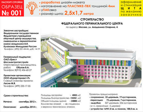 Паспорт стройки, образец № 1 (пластик 4 мм, 2500х1700 cм) в Альметьевске купить