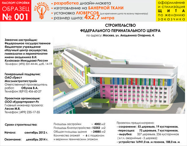 Паспорт стройки, образец № 1 (баннерная ткань, 4000х2700 cм) в Альметьевске купить