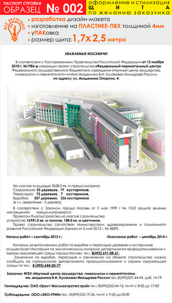 Паспорт стройки, образец № 2 (пластик 4 мм, 1700х2500 см) в Альметьевске купить
