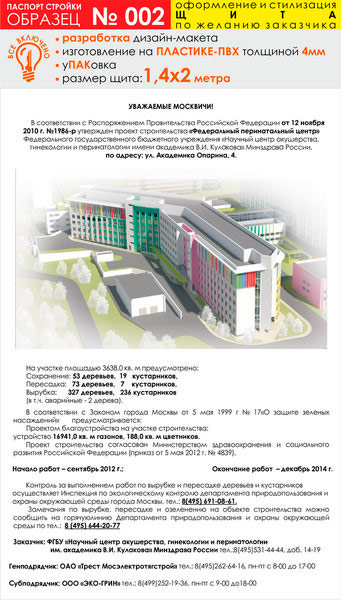 Паспорт стройки, образец № 2 (пластик 4 мм, 1400х2000 cм) в Альметьевске купить