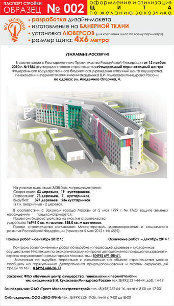 Паспорт стройки, образец № 2 (баннерная ткань, 4000х6000 см) в Альметьевске купить