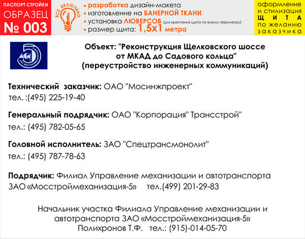 Паспорт стройки, образец № 3 (баннерная ткань, 1500х1000 cм) в Альметьевске купить