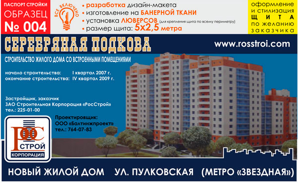 Паспорт стройки, образец № 4 (баннерная ткань, 5000х2500 cм) в Альметьевске купить
