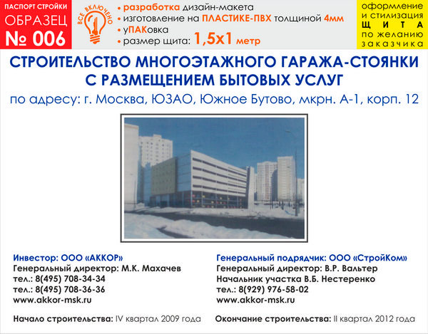 Паспорт стройки, образец № 6 (пластик 4 мм, 1500х1000 cм) в Альметьевске купить