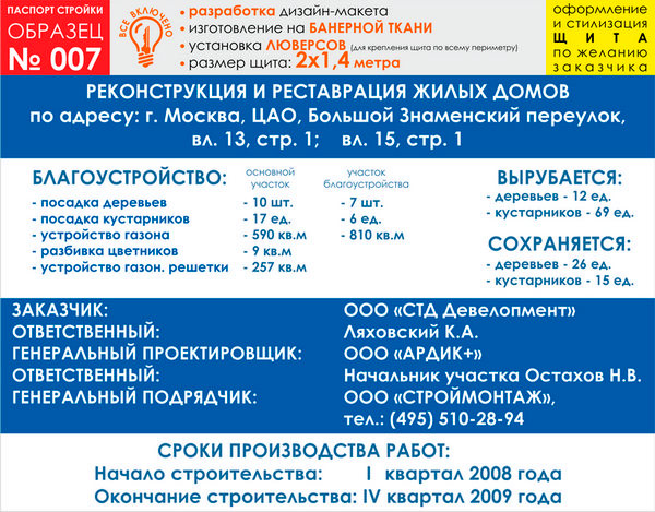 Паспорт стройки, образец № 7 (баннерная ткань, 2000х1400 cм) в Альметьевске купить