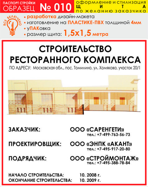 Паспорт стройки, образец № 10 (пластик 4 мм, 1500х1500 cм) в Альметьевске купить