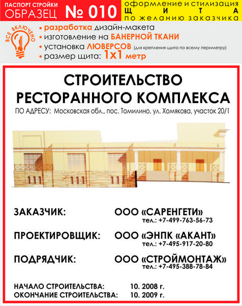 Паспорт стройки, образец № 10 (баннерная ткань, 1000х1000 cм) в Альметьевске купить
