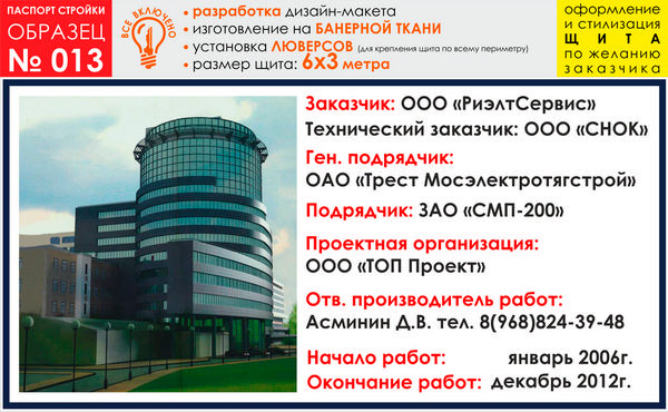 Паспорт стройки, образец № 13 (баннерная ткань, 6000х3000 cм) в Альметьевске купить