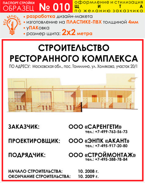 Паспорт стройки, образец № 10 (баннерная ткань, 2000х2000 cм)