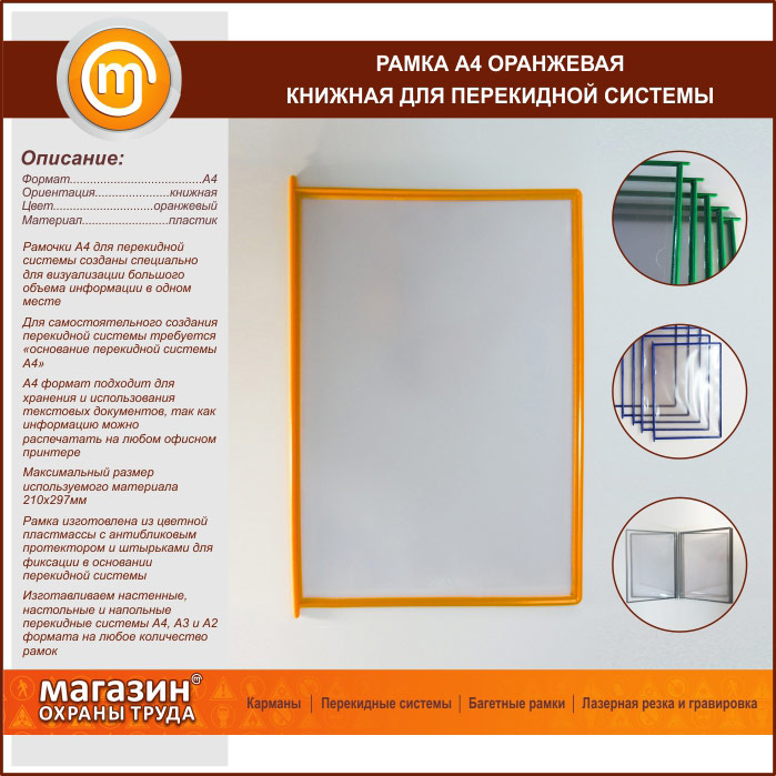 Рамка А4 оранжевая книжная в Альметьевске купить