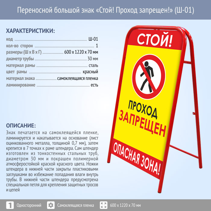 Переносной знак «Стой! Проход запрещен!» (Ш-01)