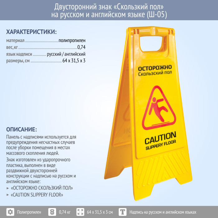 Знак «Скользкий пол» на русском и английском языке (Ш-05) в Альметьевске купить