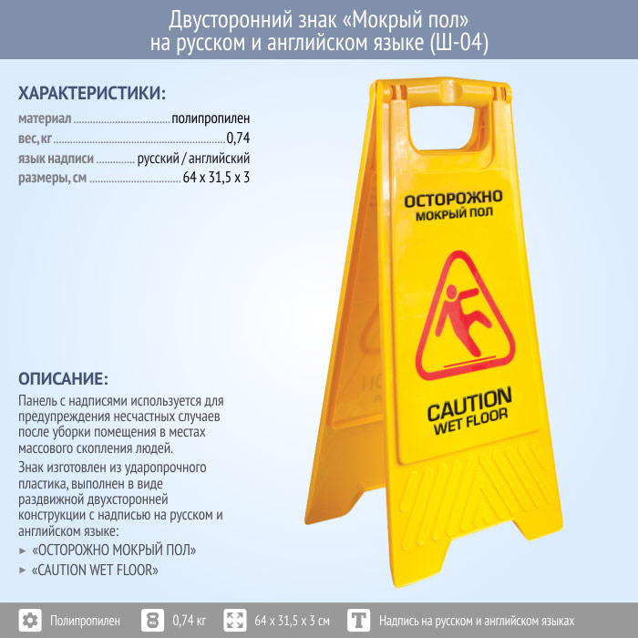 Знак «Мокрый пол» на русском и английском языке (Ш-04) в Альметьевске купить